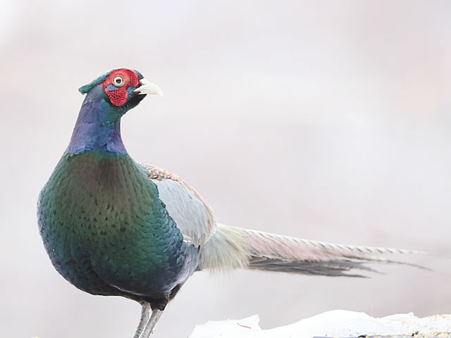 晩冬のこの時期になると、オス雉は「ケーン、ケーン」と鋭く鳴き始め、自分の縄張りを主張しながらメス雉を求めるようになります。