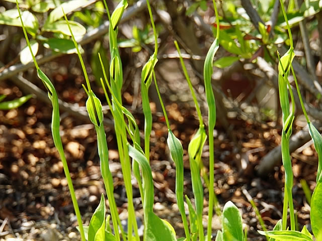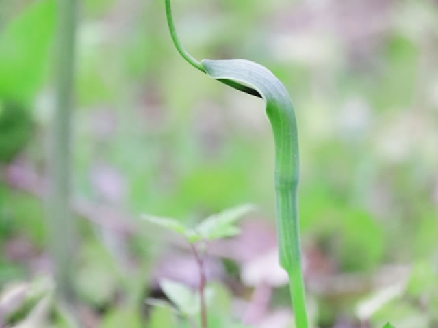 それとは別に、この時期に生えるサトイモ科のカラスビシャク(別名ハンゲ)という植物があります。